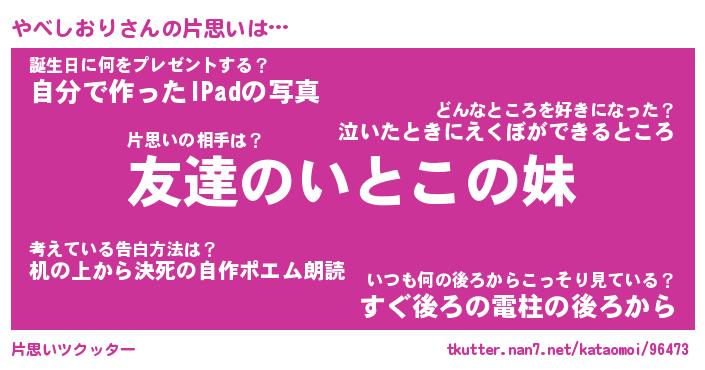 | 胡散臭い通販商品みたいなあだ名 | 『億万長者になれる水晶球…その名も「やべしおり」』 |