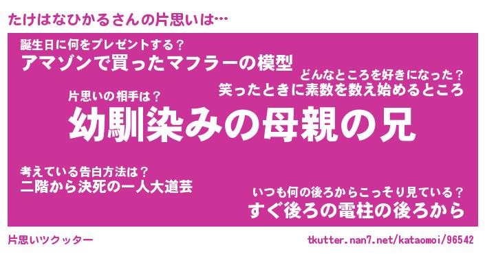 | 男性向けラノベタイトル風あだ名 | 『たけはなひかるの憂鬱』 |