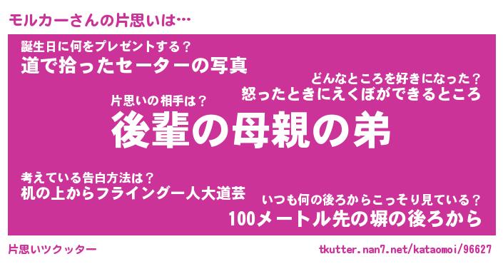| 意味不明あだ名 | 『ペロリンモルカー』『永久保存モルカー』 |