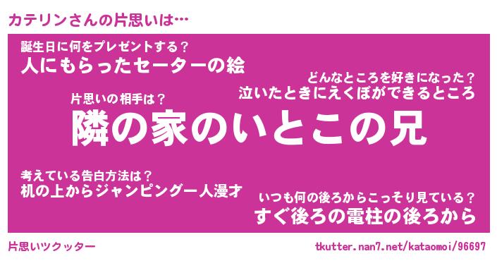 | ファンタジー風あだ名 | 『カテフェル』『エターナルカテリンー』 |
