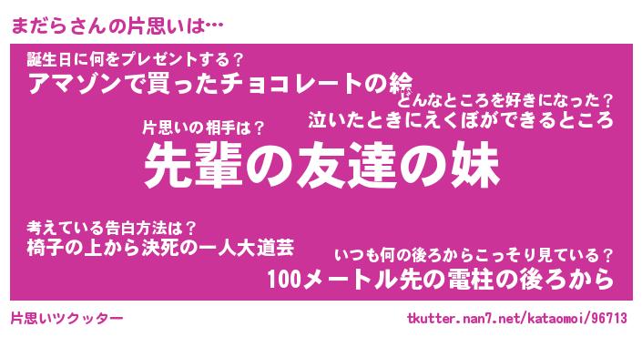 | ヘコむあだ名 | 『まだもー』『酢こんぶ』『まだを』 |