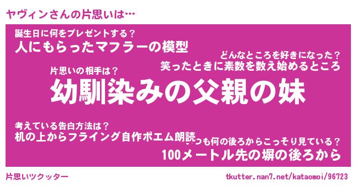 | ファンタジー風あだ名 | 『ヤヴフェル』『エターナルヤヴィンー』 |