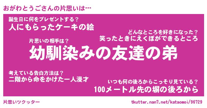 | 女子向けラノベタイトル風あだ名 | 『(仮)おがわとうごのやんごとなき事情』 |