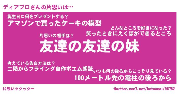 | 女子向けラノベタイトル風あだ名 | 『誰かこのディアブロを説明してください! ~契約から始まるウェディング~』 |