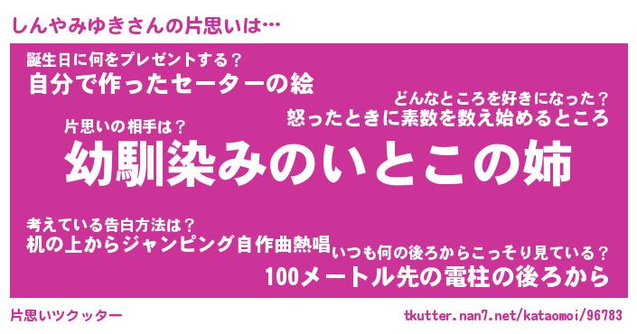 | 男性向けラノベタイトル風あだ名 | 『しんやみゆきの憂鬱』 |