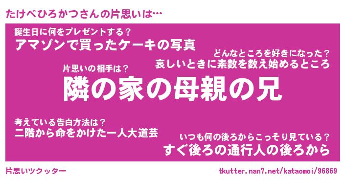 | 男性向けラノベタイトル風あだ名 | 『たけべひろかつの憂鬱』 |