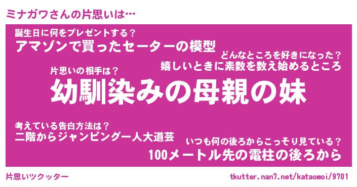 | ヒーロー風カッコイイあだ名 | 『スーパーミナガワ』『魔戒騎士ミナ』 |