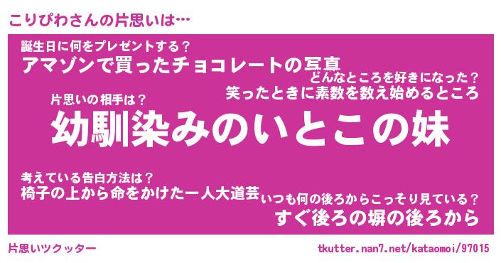 | 意味不明あだ名 | 『ペロリンこりぴわ』『永久保存こりぴわ』 |