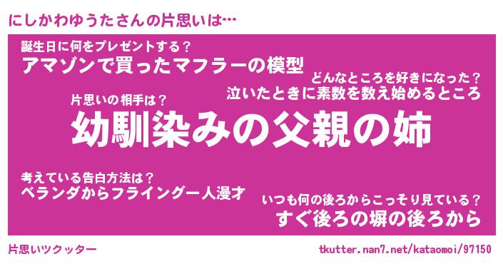 | 女子向けラノベタイトル風あだ名 | 『(仮)にしかわゆうたのやんごとなき事情』 |