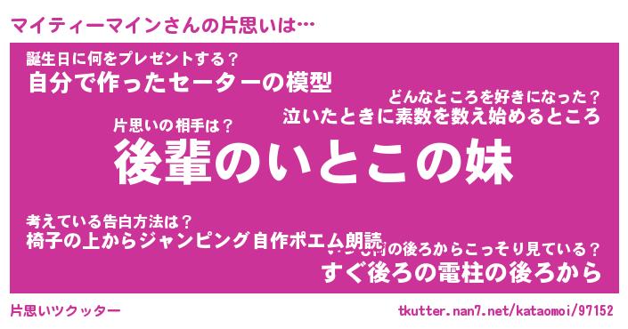 | ヘコむあだ名 | 『マイもー』『牛乳』『マイお』 |