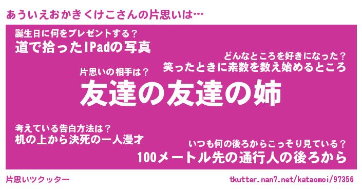 | 伝説のあだ名 | 『封印されしスナイパーあういえおかきくけこ』 |