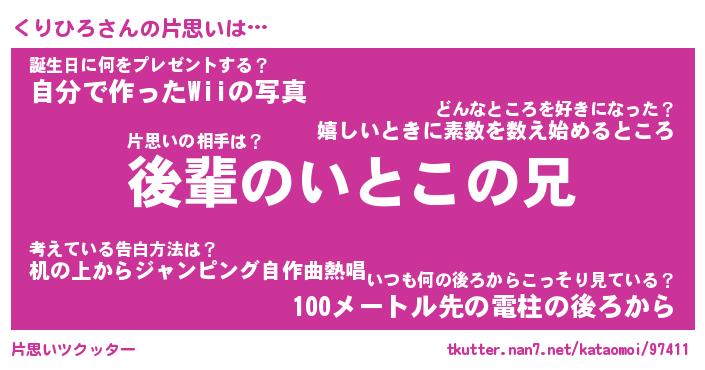 | ヘコむあだ名 | 『くりにゅー』『豆乳』『くりお』 |