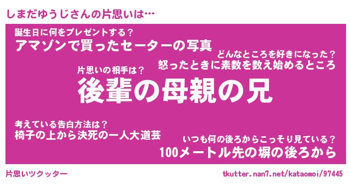 | ヒーロー風カッコイイあだ名 | 『スーパーシマダユウジ』『炎刃騎士シマ』 |