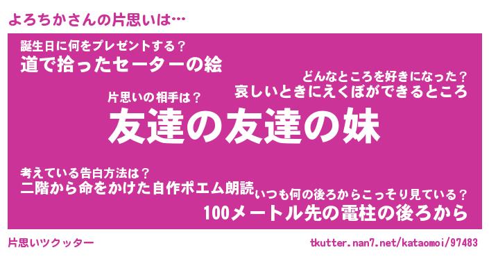 | 意味不明あだ名 | 『ペロリンよろちか』『永久保存よろちか』 |