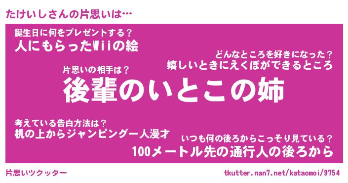 | ヒーロー風カッコイイあだ名 | 『スーパータケイシ』『暗黒騎士タケ』 |
