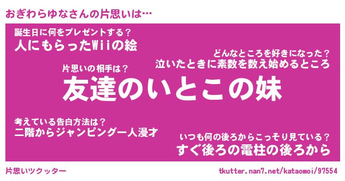 | 伝説のあだ名 | 『封印されしスナイパーおぎわらゆな』 |