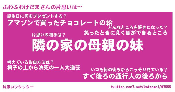 | ポケモン風あだ名 | 『フワチュウ』『フワフダネ』 |