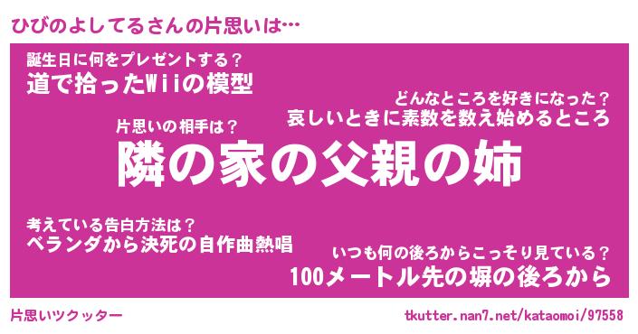 | 胡散臭い通販商品みたいなあだ名 | 『必ず成功するブレスレット…その名も「ひびのよしてる」』 |