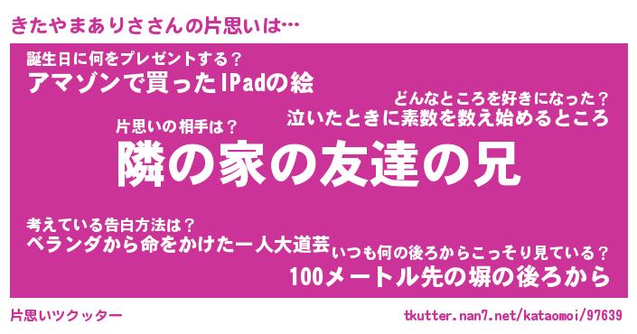 | 男性向けラノベタイトル風あだ名 | 『きたやまありさの憂鬱』 |