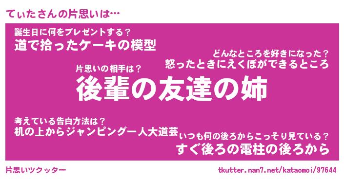 | 胡散臭い通販商品みたいなあだ名 | 『モテモテ間違いなし霊験あらたかなお札…その名も「てぃた」』 |