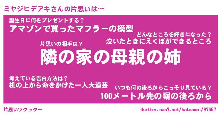 | 男性向けラノベタイトル風あだ名 | 『ミヤジヒデアキの憂鬱』 |