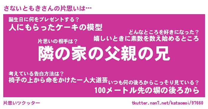 | 胡散臭い通販商品みたいなあだ名 | 『モテモテ間違いなし水晶球…その名も「さないともき」』 |