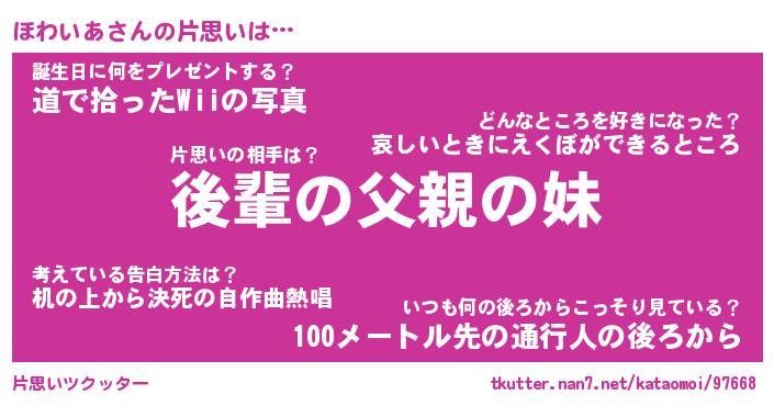 | ヘコむあだ名 | 『ほわふぇ~』『豆乳』『ほわぷりん』 |