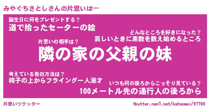 | 胡散臭い通販商品みたいなあだ名 | 『必ず成功する水晶球…その名も「みやぐちさとし」』 |