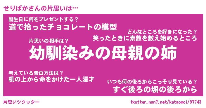 | 男性向けラノベタイトル風あだ名 | 『せりぱかの憂鬱』 |