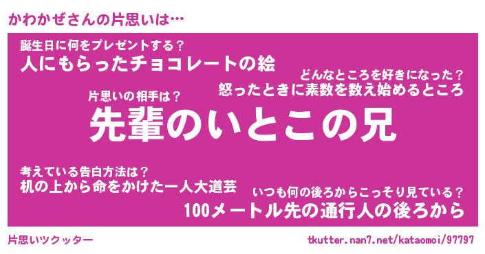 | ヒーロー風カッコイイあだ名 | 『スーパーカワカゼ』『天弓騎士カワ』 |