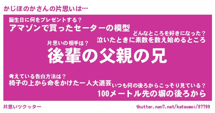 | 2回繰り返すあだ名 | 『かじかじ』『かかじじ』『ぬめぬめ』 |