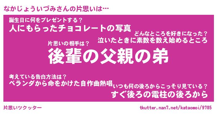 | 胡散臭い通販商品みたいなあだ名 | 『億万長者になれる水晶球…その名も「なかじょういづみ」』 |