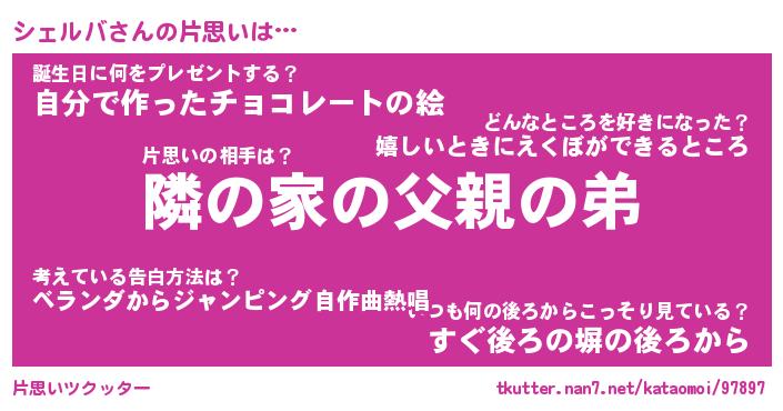 | 男性向けラノベタイトル風あだ名 | 『シェルバの憂鬱』 |