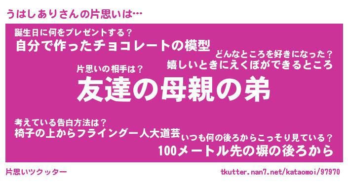 | ヘコむあだ名 | 『うはにー』『牛乳』『うはお』 |