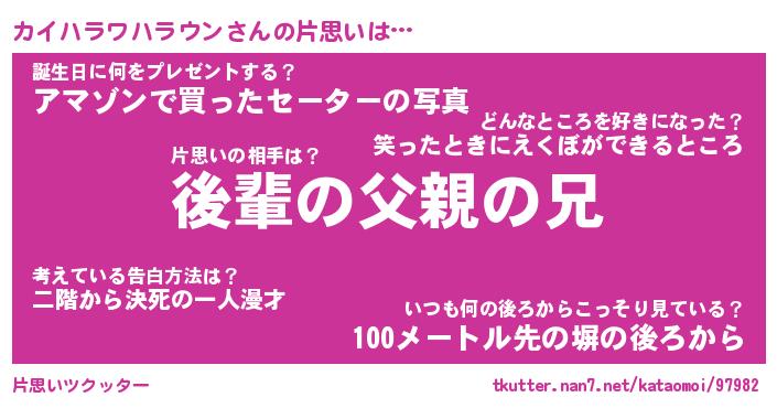 | 胡散臭い通販商品みたいなあだ名 | 『億万長者になれる水晶球…その名も「カイハラワハラウン」』 |