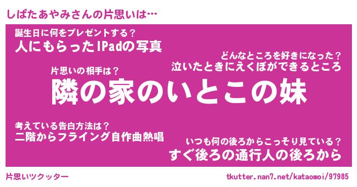 | 伝説のあだ名 | 『伝説のスナイパーしばたあやみ』 |