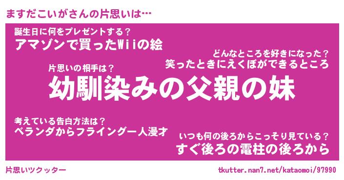 | ヘコむあだ名 | 『ますふぇ~』『酢こんぶ』『ますを』 |
