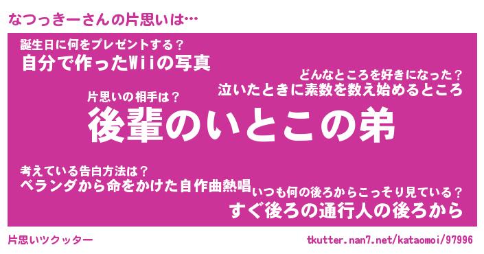 | 伝説のあだ名 | 『封印されしスナイパーなつっきー』 |