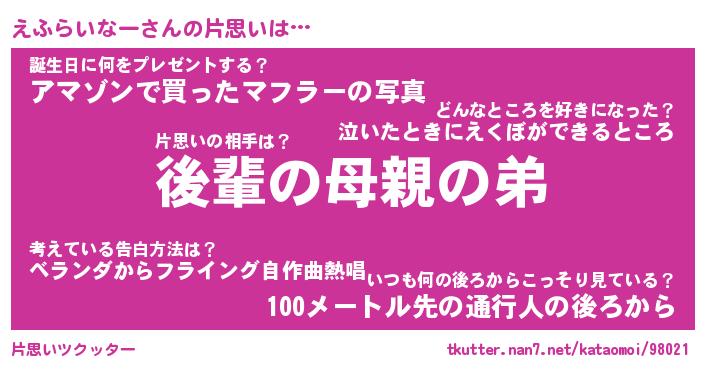 | ツイッター | えふらいなーさんのツイッターID『namakemono_man』 |