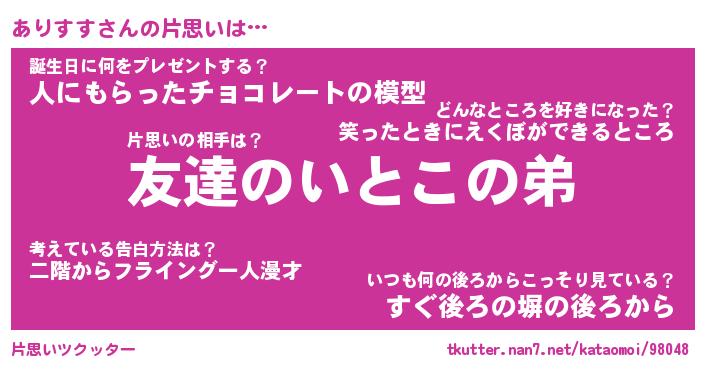 | 意味不明あだ名 | 『ペロリンありすす』『永久保存ありすす』 |