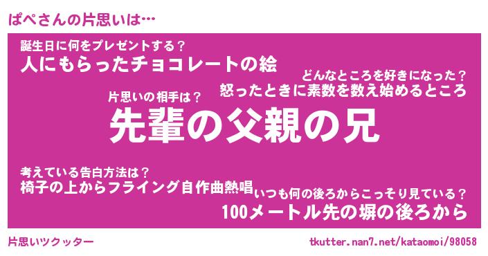 | ヘコむあだ名 | 『ぱぺふぇ~』『つくし』『ぱぺ(笑)』 |