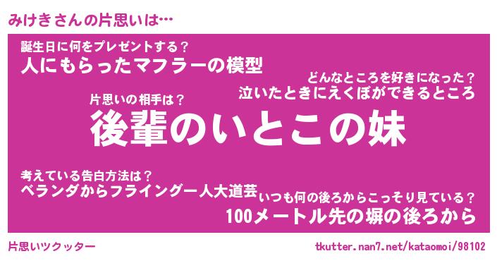 | ヘコむあだ名 | 『みけにゅー』『酢こんぶ』 |