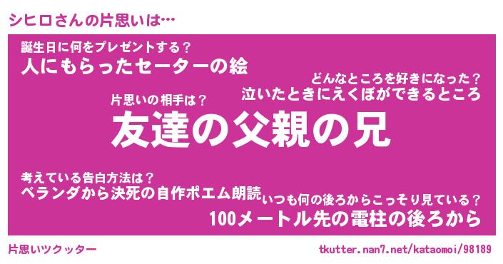 | ヘコむあだ名 | 『シヒにゅー』『酢こんぶ』『シヒお』 |