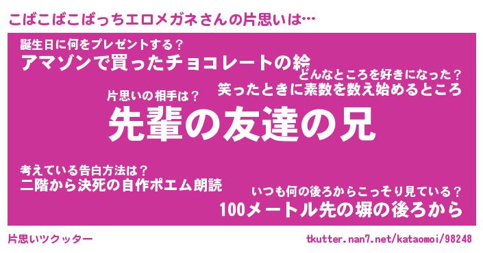 | 胡散臭い通販商品みたいなあだ名 | 『モテモテ間違いなし霊験あらたかなお札…その名も「こばこばこばっちエロメガネ」』 |