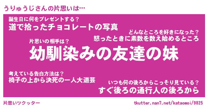 | 男性向けラノベタイトル風あだ名 | 『うりゅうじの憂鬱』 |