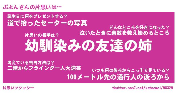 | ヘコむあだ名 | 『ぷよもー』『つくし』『ぷよぷりん』 |