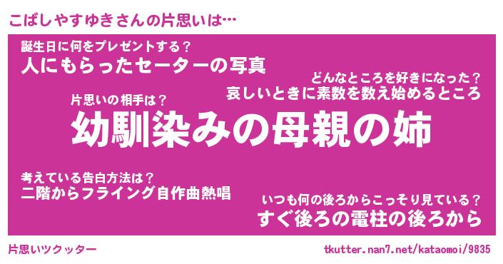 | ヘコむあだ名 | 『こばにー』『酢こんぶ』 |
