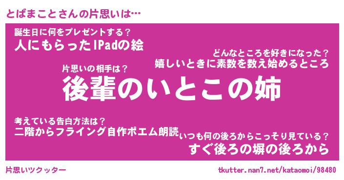 | ツイッター | とばまことさんのツイッターID『namakemono_kun』 |