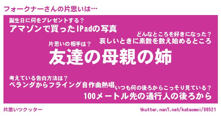 | 胡散臭い通販商品みたいなあだ名 | 『億万長者になれるブレスレット…その名も「フォークナー」』 |