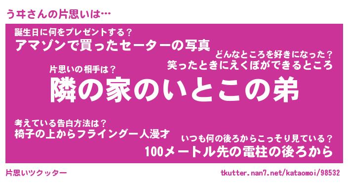 | ヘコむあだ名 | 『うヰもー』『なまこ酢』『うヰお』 |